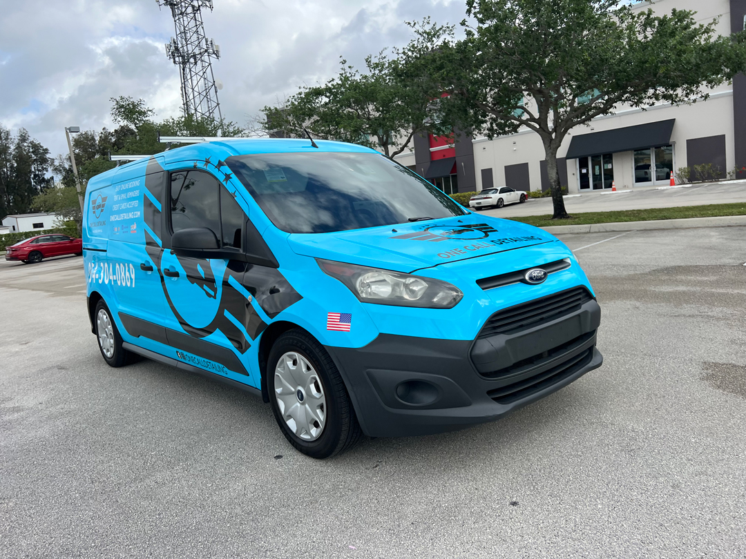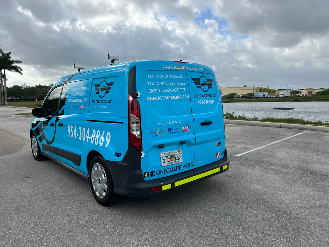 Commercial Ford Transit Connect Wrap Advertising for a Car Detailing company in Dania Beach Florida