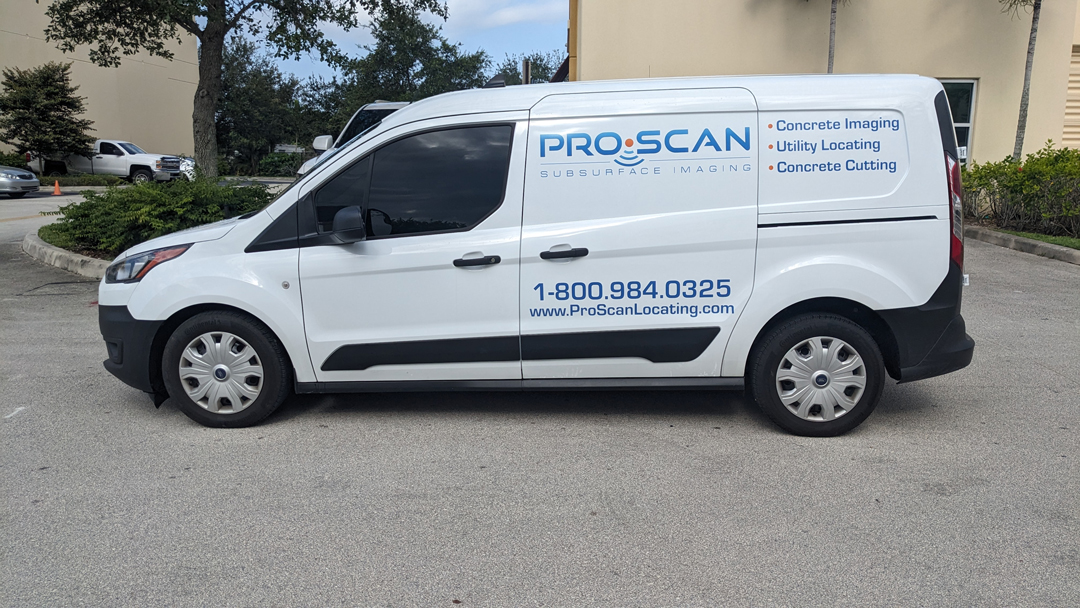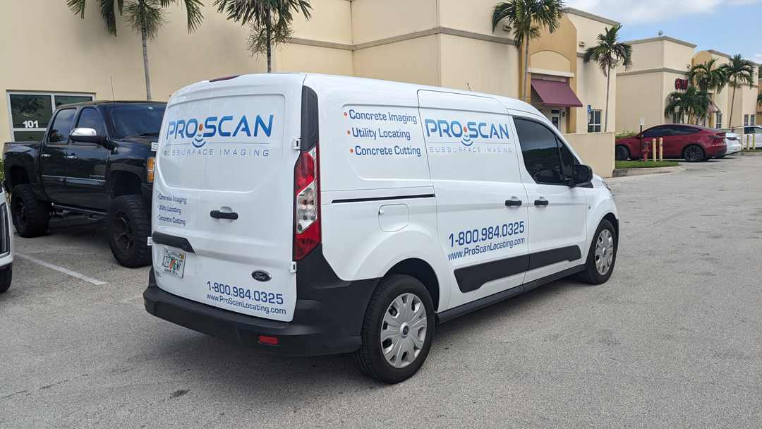 Commercial Ford Transit Connect Wrap Advertising for a Marine Construction company in Hollywood Florida