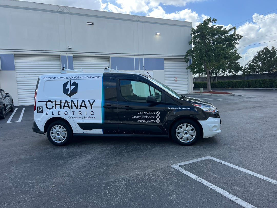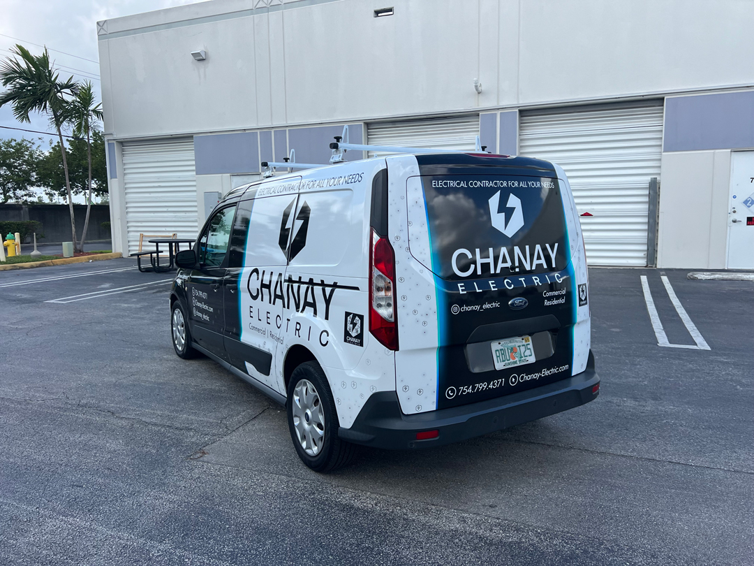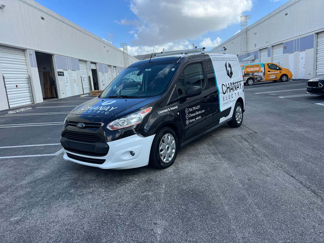 Commercial Ford Transit Connect Wrap Advertising for a Commercial and Residential Electrical Contractor in Fort Lauderdale Florida